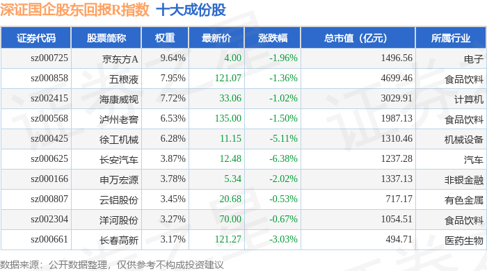 深证国企股东回报R(470064)指数十大成份股详情如下: