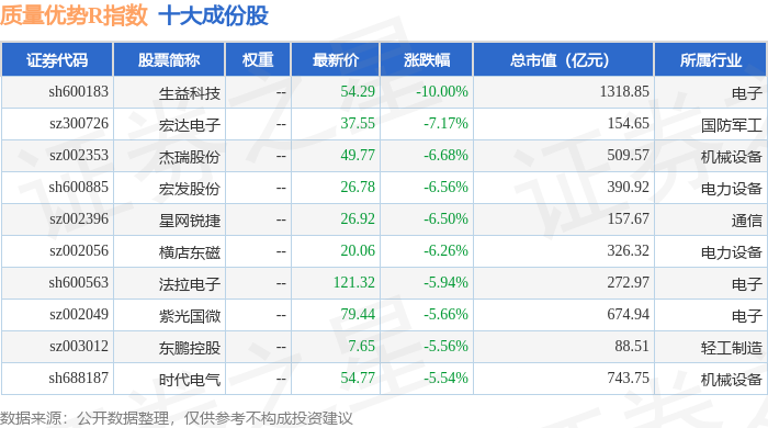 质量优势R(489017)指数十大成份股详情如下: