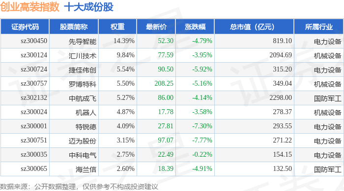 资金流向方面,创业高装(970040)指数成份股当日主力资金净流出合计28.56亿元,游资资金净流入合计3.97亿元,散户资金净流入合计24.59亿元。成份股资金流向详情见下表: