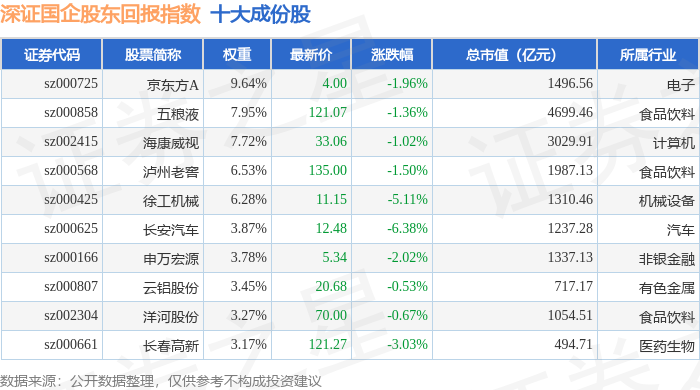 深证国企股东回报(970064)指数十大成份股详情如下: