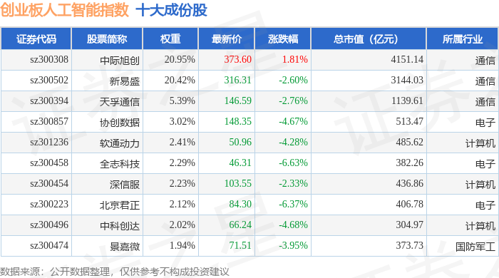 近10日内创业板人工智能(970070)指数成份股做了调整,新纳入了1只股票,剔除了1只股票。