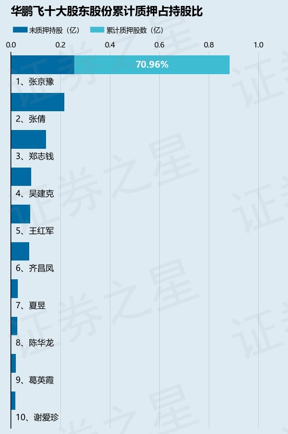 截止本公告日,股东张京豫已累计质押股份6270.0万股,占其持股总数的70.96%。本次质押后华鹏飞十大股东的累计质押股份占持股比例(占持股比例的计算以公司最新一期财务报表公布的十大股东的持股总数为基准)见下图: