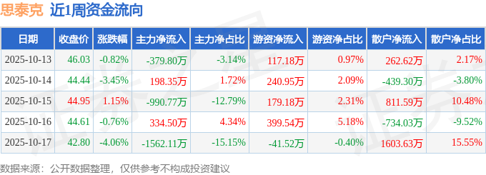 资金流向数据方面,本周思泰克主力资金合计净流出2399.84万元,游资资金合计净流入895.33万元,散户资金合计净流入1504.51万元。本周资金流向一览见下表: