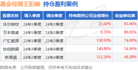 王阳峰管理的中金中证1000指数增强发起A基金在24年1季度买入沃尔核材,在持有1个季度后在24年2季度卖出。持有期间的估算收益率为81.06%,持有期间沃尔核材在2023年到2024年的年报营业总收入增幅达21.02%。