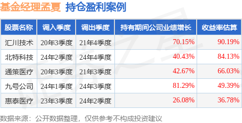 孟夏管理的嘉实制造升级股票发起式A基金在24年2季度买入北特科技,在持有2个季度后在24年4季度卖出。持有期间的估算收益率为84.13%,持有期间北特科技在2023年到2024年的年报归属净利润增幅达40.43%。