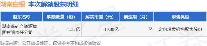 证券之星消息,根据市场公开信息整理,湖南白银(002716)于10月20日将有1.32亿股限售股份解禁,为公司定向增发机构配售股份,占公司总股本4.67%。(本次数据根据历史公告整理得出,实际情况以上市公司最新公告为准)本次解禁后,公司还有4.98亿股限售股份,占总股本17.65%。具体如下图所示: