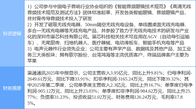 该股为无线充电,智能眼镜/MR头显,苹果产业链概念热股,当日无线充电概念上涨2.43%,智能眼镜/MR头显概念上涨2.18%,苹果产业链概念上涨2.05%。
