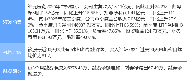今日皓元医药(688131)涨5.96%,收盘报79.82元。