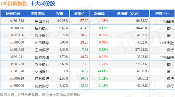 证券之星消息,10月20日,180价值(000029)指数报收于4342.72点,涨0.26%,成交673.47亿元,换手率0.37%。当日该指数成份股中,上涨的有34家,潞安环能以7.23%的涨幅领涨,下跌的有25家,浦发银行以2.48%的跌幅领跌。