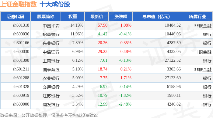 证券之星消息,10月20日,上证金融(000038)指数报收于5713.79点,涨0.23%,成交457.64亿元,换手率0.32%。当日该指数成份股中,上涨的有18家,中国人寿以4.14%的涨幅领涨,下跌的有12家,浦发银行以2.48%的跌幅领跌。