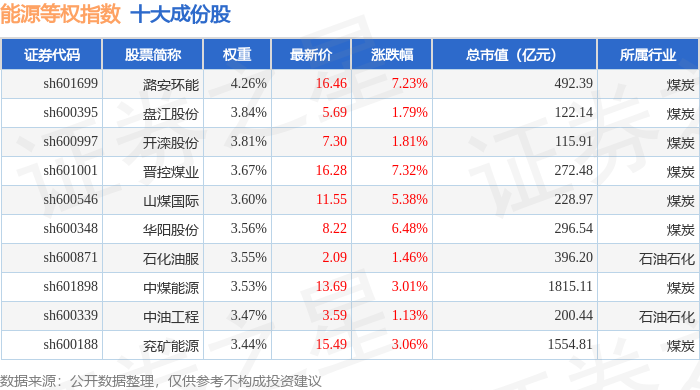证券之星消息,10月20日,能源等权(000070)指数报收于2793.23点,涨3.15%,成交206.06亿元,换手率0.59%。当日该指数成份股中,上涨的有30家,平煤股份以9.1%的涨幅领涨。