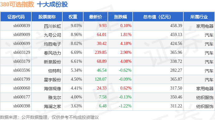 380可选(000107)指数十大成份股详情如下: