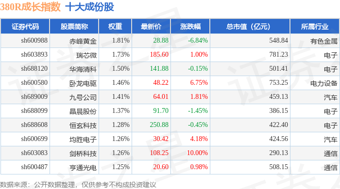 380R成长(000119)指数十大成份股详情如下:
