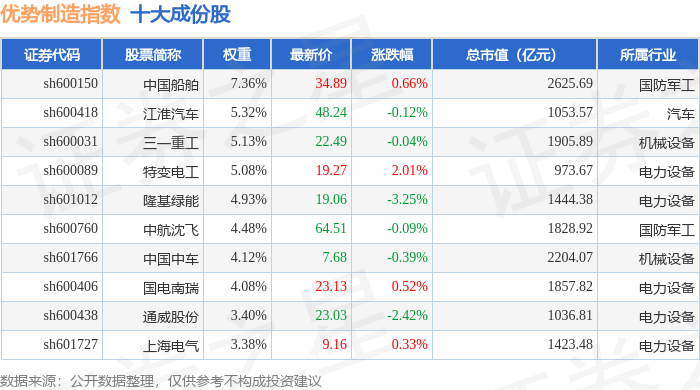 优势制造(000146)指数十大成份股详情如下: