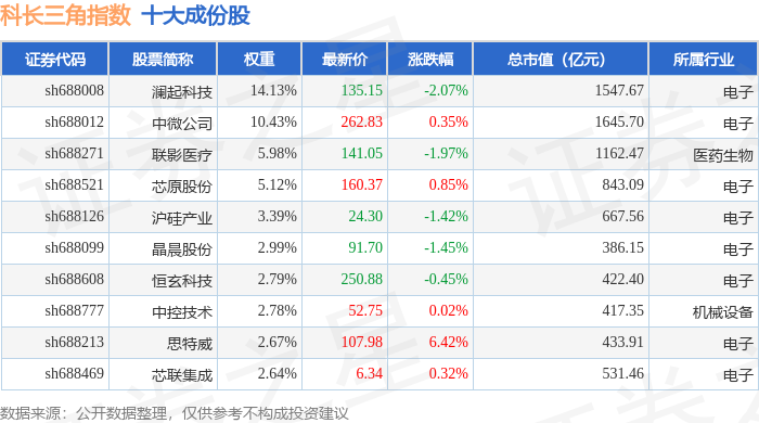 证券之星消息,10月20日,科长三角(000695)指数报收于1016.39点,跌0.19%,成交347.79亿元,换手率1.93%。当日该指数成份股中,上涨的有32家,思特威以6.42%的涨幅领涨,下跌的有25家,容百科技以4.75%的跌幅领跌。