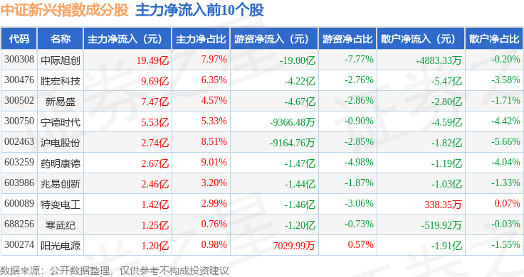 资金流向方面,中证新兴(000964)指数成份股当日主力资金净流出合计10.65亿元,游资资金净流出合计24.81亿元,散户资金净流入合计35.46亿元。成份股资金流向详情见下表: