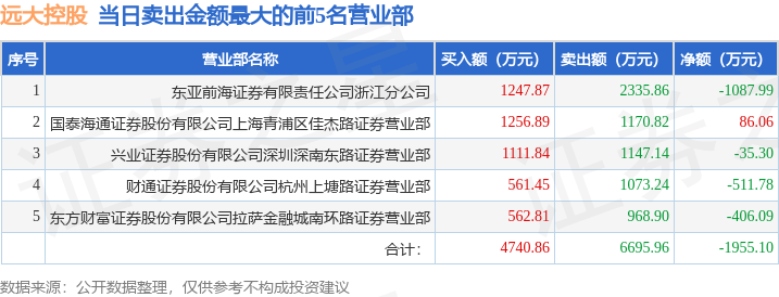 证券之星消息,沪深交易所2025年10月20日公布的交易公开信息显示,远大控股(000626)因日振幅值达到15%的前5只证券,日涨幅偏离值达到7%的前5只证券登上龙虎榜。此次是近5个交易日内第3次上榜。