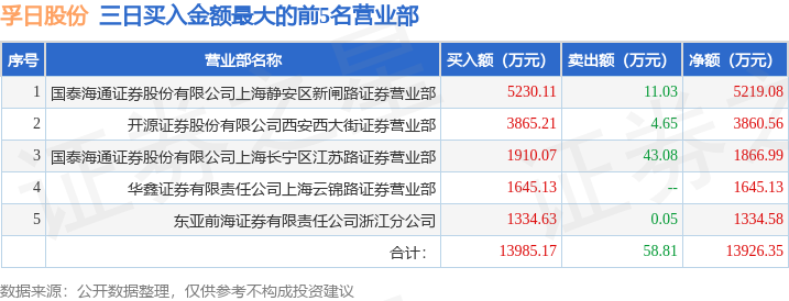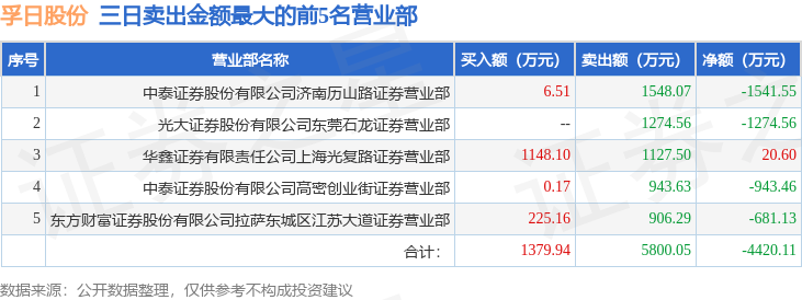 从龙虎榜公布的三日买卖数据来看,上海超短帮、章盟主等知名游资榜上有名。(知名游资上海超短帮一般指国泰海通证券股份有限公司上海静安区新闸路证券营业部席位、知名游资章盟主一般指国泰海通证券股份有限公司上海长宁区江苏路证券营业部席位,根据市场资料整理,仅供参考)
