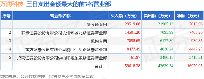 证券之星消息,沪深交易所2025年10月20日公布的交易公开信息显示,万润科技(002654)因日涨幅偏离值达到7%的前5只证券,连续三个交易日内,涨幅偏离值累计达到20%的证券登上龙虎榜。此次是近5个交易日内第1次上榜。