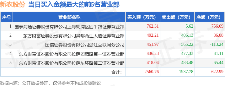 证券之星消息,沪深交易所2025年10月20日公布的交易公开信息显示,新农股份(002942)因日跌幅偏离值达到7%的前5只证券登上龙虎榜。此次是近5个交易日内第4次上榜。