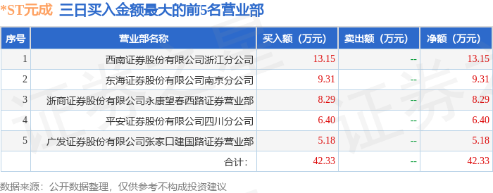 证券之星消息,沪深交易所2025年10月20日公布的交易公开信息显示,*ST元成(603388)因ST、*ST证券连续三个交易日内收盘价格跌幅偏离值累计达到12%的证券登上龙虎榜。此次是近5个交易日内第2次上榜。