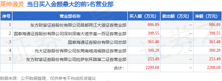 证券小知识:龙虎榜是交易所披露的竞价交易公开信息,现身龙虎榜的个股都是当日最为活跃的个股,是投资者日常重点关注的数据。交易所公布当日买入金额和卖出金额前五名的席位,其中一些席位代表特殊意义,如机构专用席位是指基金专用席位、券商自营专用席位、社保专用席位、券商理财专用席位、保险机构专用席位、保险机构租用席位、QFII专用席位等机构投资者买卖证券的专用通道和席位。深股通专用、沪股通专用为北向资金的交易席位。从龙虎榜数据可以发现和研究机构、游资和散户的资金动向。一些营业部席位经常上榜,市场知名度较高,投资者整理代表散户、游资、量化等不同资金的营业部席位。