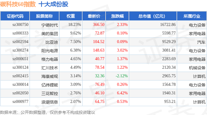 碳科技60(399060)指数十大成份股详情如下: