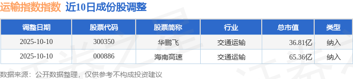 近10日内运输指数(399237)成份股做了调整,新纳入了2只股票。