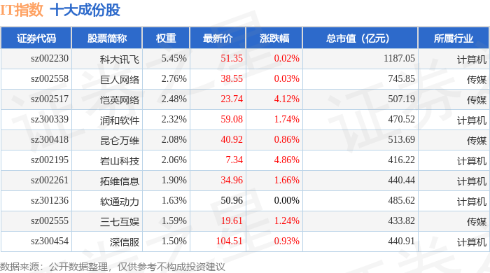 近10日内IT指数(399239)成份股做了调整,新纳入了2只股票,剔除了1只股票。
