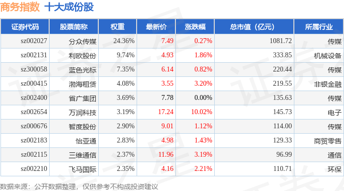 近10日内商务指数(399242)成份股做了调整,新纳入了1只股票。
