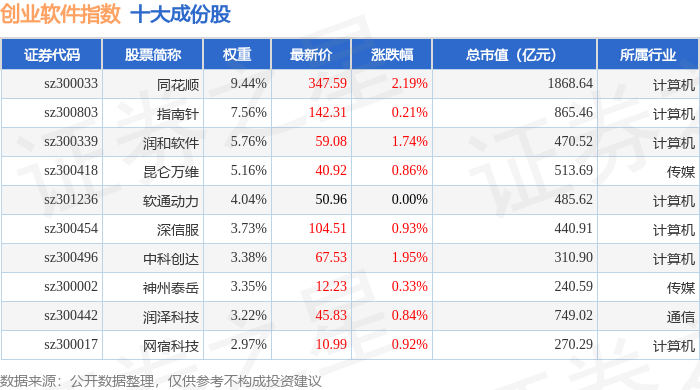 资金流向方面,创业软件(399264)指数成份股当日主力资金净流出合计10.17亿元,游资资金净流入合计1.43亿元,散户资金净流入合计8.75亿元。成份股资金流向详情见下表: