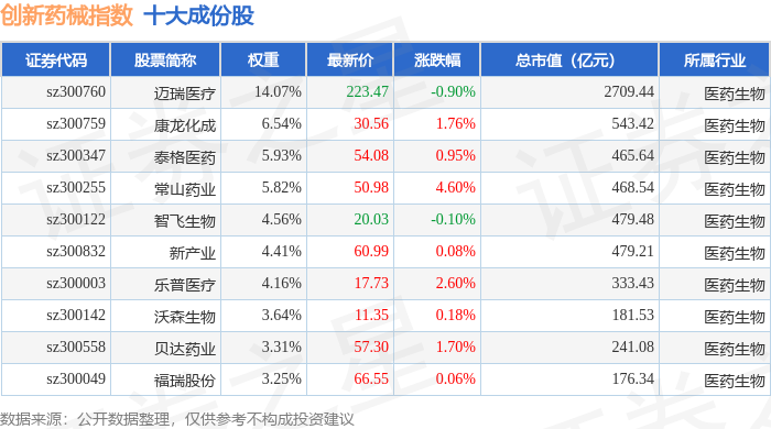 证券之星消息,10月20日,创新药械(399265)指数报收于1095.47点,涨0.96%,成交148.61亿元,换手率1.88%。当日该指数成份股中,上涨的有38家,我武生物以10.07%的涨幅领涨,下跌的有12家,舒泰神以1.83%的跌幅领跌。