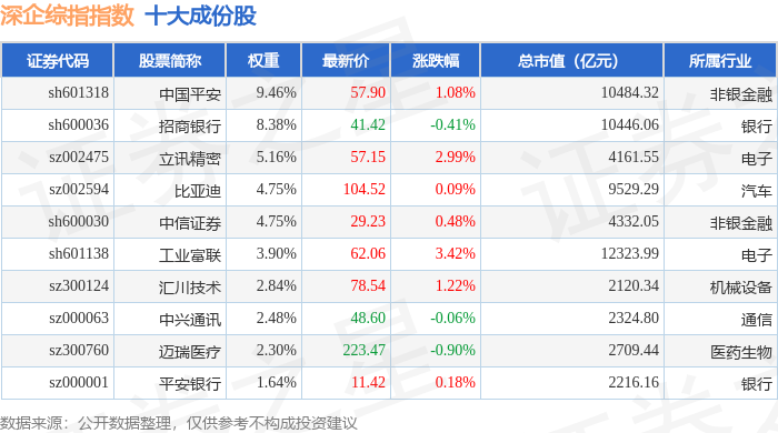 深企综指(399352)指数十大成份股详情如下:
