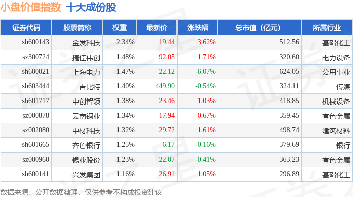 小盘价值(399377)指数十大成份股详情如下: