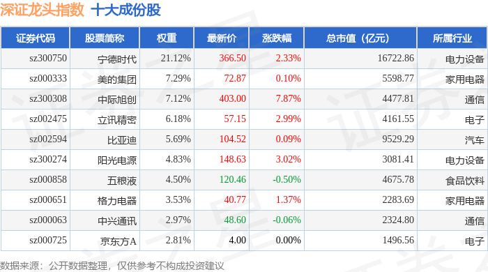 深证龙头(399653)指数十大成份股详情如下: