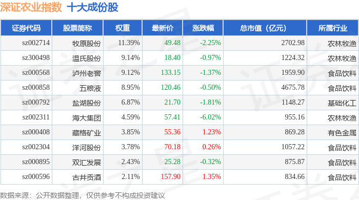 资金流向方面,深证农业(399669)指数成份股当日主力资金净流出合计6.37亿元,游资资金净流入合计1.1亿元,散户资金净流入合计5.27亿元。成份股资金流向详情见下表:
