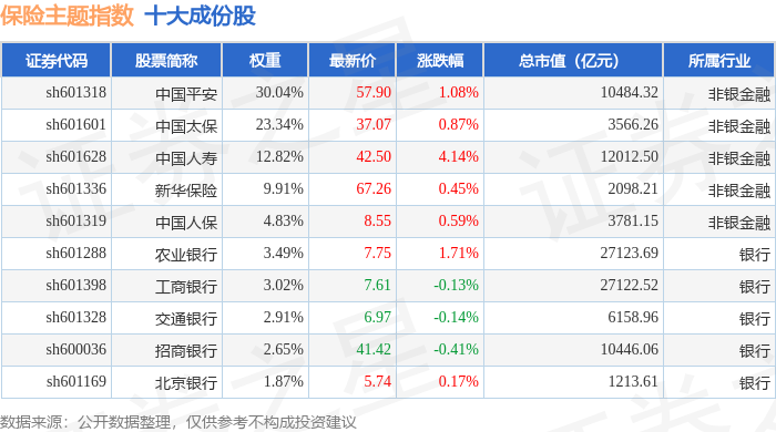 资金流向方面,保险主题(399809)指数成份股当日主力资金净流入合计8.76亿元,游资资金净流出合计4.93亿元,散户资金净流出合计3.83亿元。成份股资金流向详情见下表: