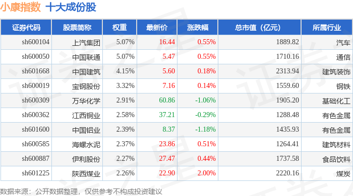 证券之星消息,10月20日,小康指数(399901)报收于6272.39点,涨0.03%,成交1050.53亿元,换手率0.8%。当日该指数成份股中,上涨的有48家,潞安环能以7.23%的涨幅领涨,下跌的有51家,山东黄金以6.34%的跌幅领跌。