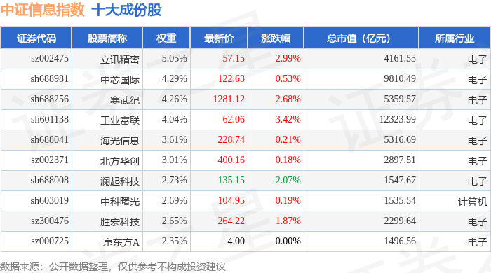 证券之星消息,10月20日,中证信息(399935)指数报收于6291.75点,涨1.07%,成交2437.77亿元,换手率2.14%。当日该指数成份股中,上涨的有92家,景旺电子以8.8%的涨幅领涨,下跌的有33家,歌尔股份以2.53%的跌幅领跌。