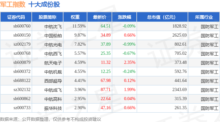 证券之星消息,10月20日,军工指数(399959)报收于1594.81点,涨0.4%,成交154.84亿元,换手率1.1%。当日该指数成份股中,上涨的有25家,天奥电子以10.0%的涨幅领涨,下跌的有15家,洪都航空以1.74%的跌幅领跌。