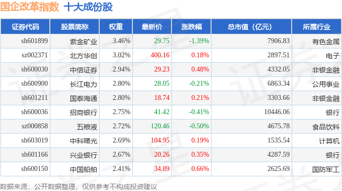 证券之星消息,10月20日,国企改革(399974)指数报收于1874.65点,跌0.16%,成交1361.33亿元,换手率0.69%。当日该指数成份股中,上涨的有49家,华润微以3.68%的涨幅领涨,下跌的有50家,山东黄金以6.34%的跌幅领跌。
