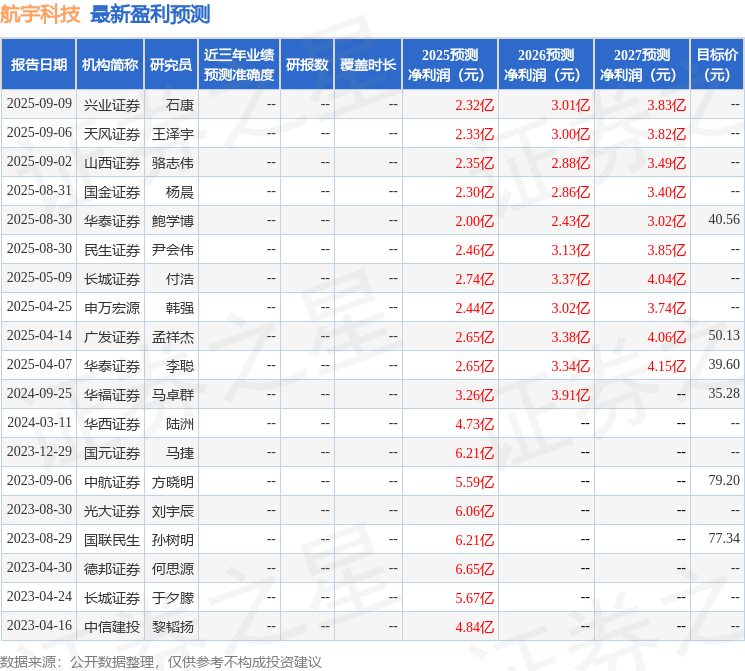 以下是详细的盈利预测信息: