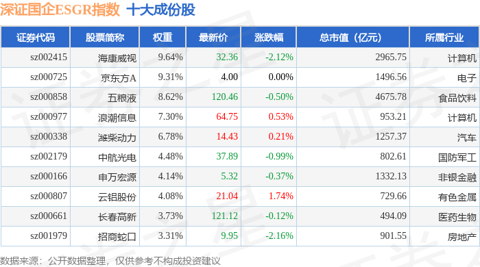 深证国企ESGR(470055)指数十大成份股详情如下: