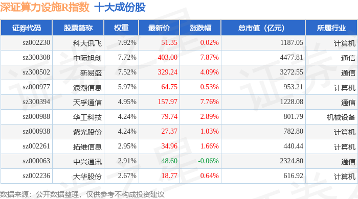 深证算力设施R(470051)指数十大成份股详情如下: