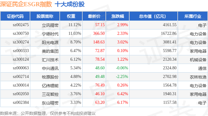 深证民企ESGR(470056)指数十大成份股详情如下: