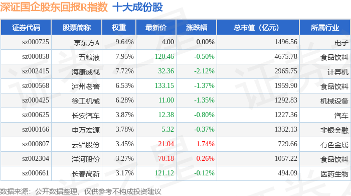 深证国企股东回报R(470064)指数十大成份股详情如下: