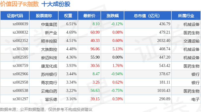 证券之星消息,10月20日,价值因子R(480056)指数报收于3016.29点,涨0.43%,成交356.58亿元,换手率0.98%。当日该指数成份股中,上涨的有24家,思源电气以7.69%的涨幅领涨,下跌的有25家,海大集团以6.02%的跌幅领跌。