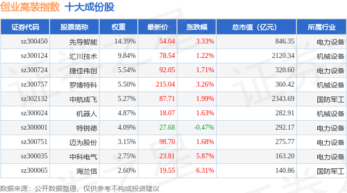 证券之星消息,10月20日,创业高装(970040)指数报收于3970.81点,涨2.06%,成交243.59亿元,换手率3.38%。当日该指数成份股中,上涨的有46家,海兰信以6.31%的涨幅领涨,下跌的有4家,斯莱克以1.12%的跌幅领跌。