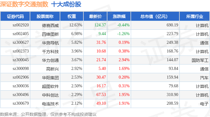 深证数字交通(970049)指数十大成份股详情如下: