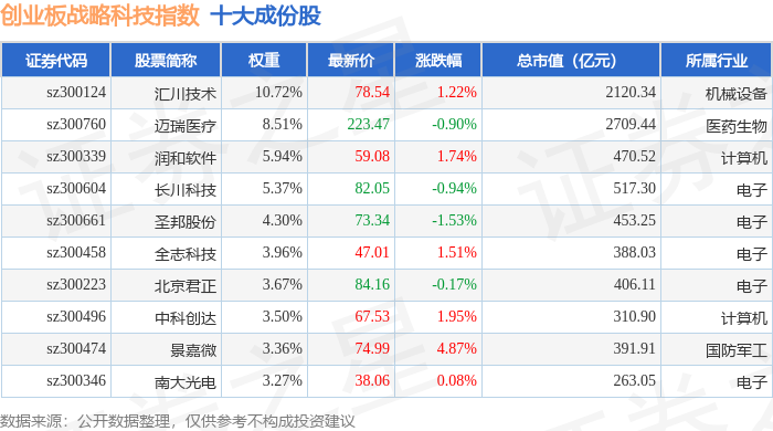证券之星消息,10月20日,创业板战略科技(971004)指数报收于6355.27点,涨0.99%,成交325.91亿元,换手率2.85%。当日该指数成份股中,上涨的有36家,德石股份以19.98%的涨幅领涨,下跌的有14家,透景生命以3.12%的跌幅领跌。